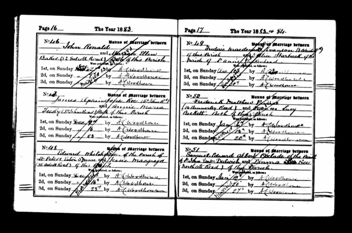John Ronald & Marian Ellen Baker - Marriage Banns