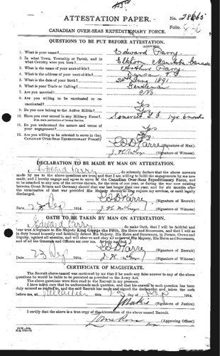 Edward Arthur Dymoke Parry - Attestation Paper